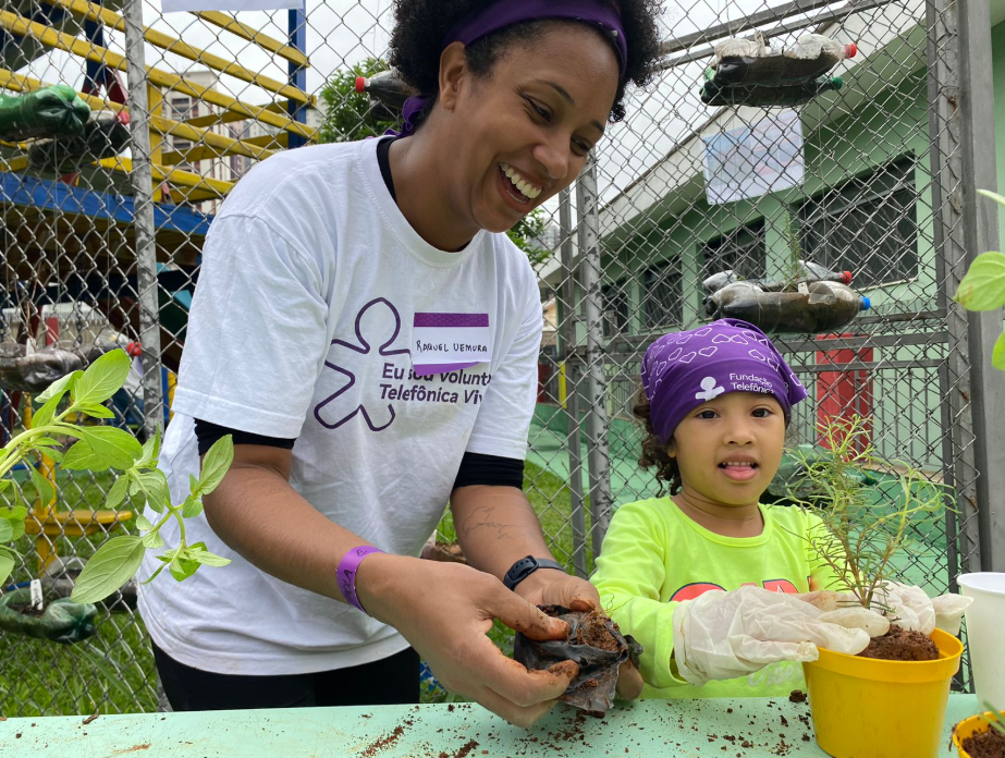 O dia 7 de junho de 2024 entrou para a história do Grupo Telefônica. Pela primeira vez, ações simultâneas de solidariedade e transformação social aconteceram em 12 países nos quais a empresa atua, reunindo 27 mil voluntários. Aqui no Brasil, país com o maior programa de voluntariado da companhia, a 20ª edição do Dia dos Voluntários foi marcada pelas celebrações dos 25 anos da Fundação Telefônica Vivo, e pelo recorde no número de voluntários: cerca de 10 mil colaboradores voluntários se mobilizaram em mais de 55 instituições em 39 cidades de todas as regiões do Brasil. Ao todo, mais de 39 mil pessoas foram beneficiadas.